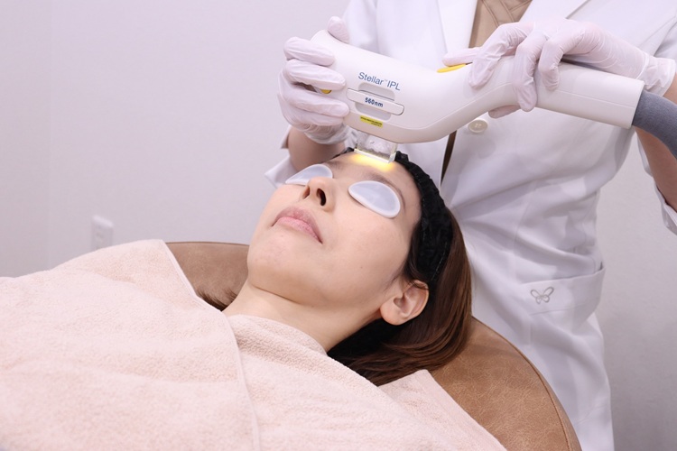 ステラM22を用いたフォトフェイシャル®治療は、IPL(Intense Pulse Light)という強い光をお顔全体に照射することでシミ、くすみ、赤ら顔、小じわ、毛穴の開きなどを改善する美肌治療器です。